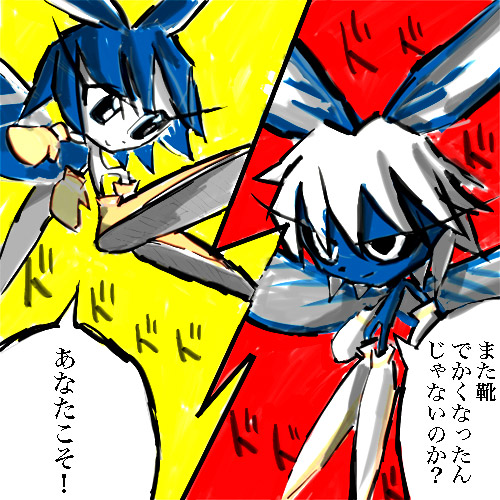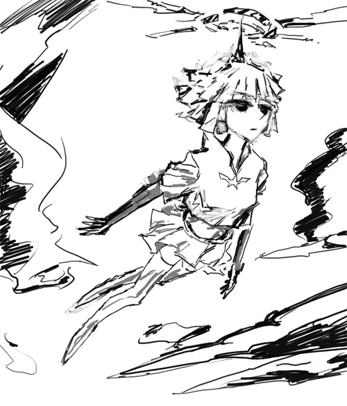 いやほんとにでかくなりました、靴。…っつってもこれが初登場の名無し二人。でかくなったのは封神演義の影響。それがまた半端無いのだ。ポーズに支障が出るだろってくらいでかいのだ。でも見る限り難ありなポージングはなかった、かな。というか支障が出るポーズは描けないから描いてないんじゃ?と思うくらい。リスキーなレベルなのだ。人間なのにでかいのだ。だから彼ら仙人は人外なのだ。でかくても人外だから許されるのだ。…靴をでかくすることによって”人外っぽさ”はぐんと上がります。だから自分も元々少し大きめに描いてました。しかし封神演義によってより一層造形の大小が極端になった気がするし、線の描き方、他にもいろいろ影響受けました。演義のキャラ、あんまり描いてないのにね。機会あれば自分の造形方法とか、解説絵もふまえて語りたいものですね…。封神演義についても。