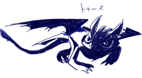 絵は、ドラゴン練習も兼ねて描いたから、あんまりいいポーズじゃないのを選んでそれを見ながら。かわいさもあんまりかわいくない。